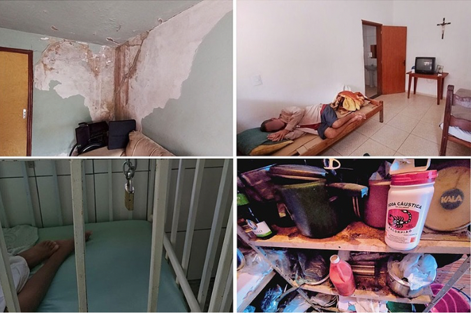 Pessoas amarradas a cadeiras ou mantidas em estruturas semelhantes a gaiolas, uso coletivo de roupas, de toalhas e de escovas de dentes, banheiros sem porta, câmeras em locais íntimos, quartos superlotados, ambientes insalubres, infraestrutura comprometida, alimentação inadequada (inclusive jejuns impostos por motivos religiosos), ausência de acompanhamento das equipes de saúde da família, inexistência de atividades de lazer, apesar da previsão normativa.